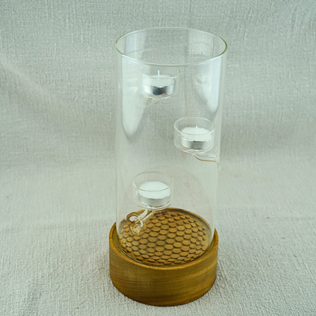 Live Edge Wooden Candle Holder with Glass Tealight Dishes