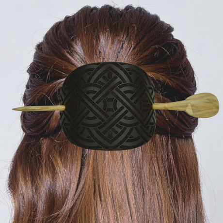 Regular price £3.50Unit priceUnavailableLeather Hair Barrette – Celtic Design on Black Leather with Oak Stick