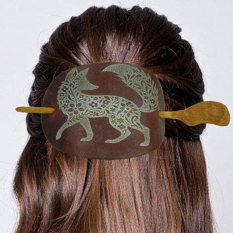 Regular price £35.00Unit priceUnavailableHandcrafted Leather Hair Barrette – Bronze Fox on Brown Leather with Oak Stick