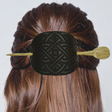 Handcrafted Leather Hair Barrette –Celtic Design on Black Leather with Oak Stick