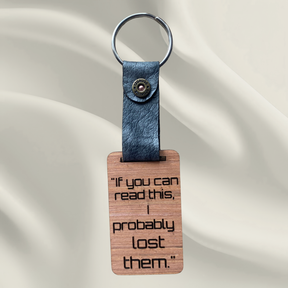 "If you can read this I probably lost them", Key Ring with Leather Strap and Shotgun Rivet Detail