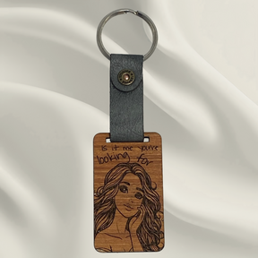 "Is it me you're looking for", Key Ring with Leather Strap and Shotgun Rivet Detail