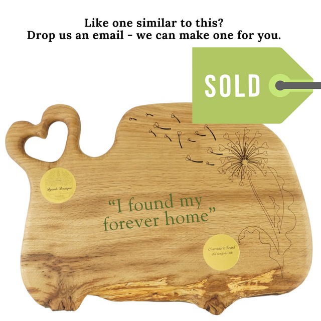 Featuring a natural wainy edge that highlights the oak’s organic beauty, these boards are adorned with a finely laser-engraved design for a touch of artistry. Each is meticulously finished with food-safe British beeswax, enhancing the wood’s character while ensuring lasting durability.