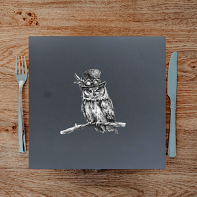 1 × square slate placemat with Steampunk Owl engraving