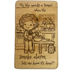 Bring warmth and wit to your kitchen with our laser-engraved wooden sign, handcrafted with care in Derbyshire, England. Perfectly crafted, it features the charmingly humorous phrase: 'Who needs a timer when the smoke alarm lets me know it's done?.'
