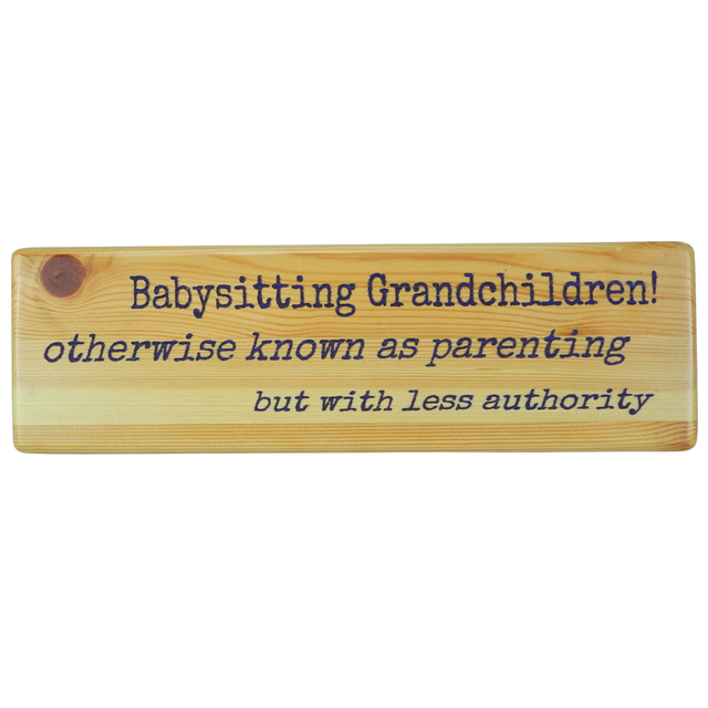 Bring humour and charm to your home or office with our laser-engraved wooden sign, handcrafted with care in Derbyshire, England. Perfectly crafted, it features the phrase: 'Babysitting grandchildren! otherwise known as parenting but with less authority'