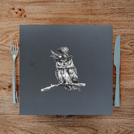 Square Natural Slate Placemat – 33cm (Steampunk Owl Engraving)