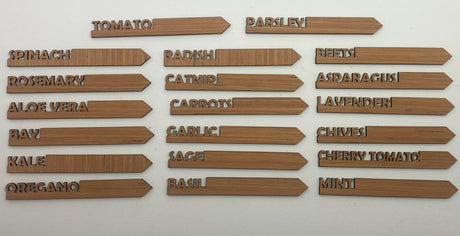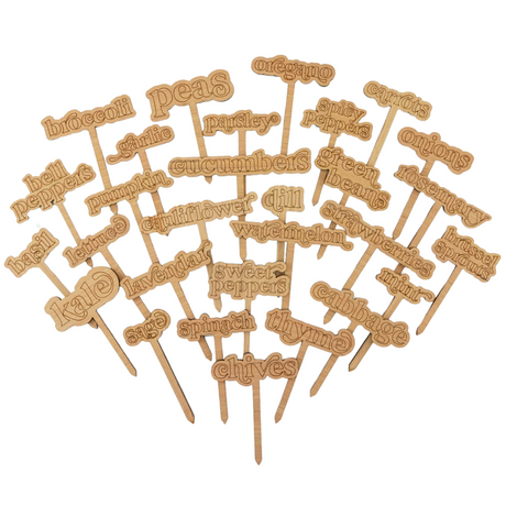 20 Laser-Cut Wooden Garden Markers: Classic Collection.