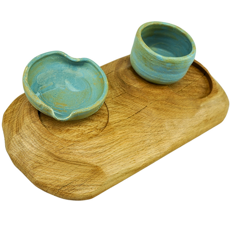Reversible Wooden Tray with Stoneware Pot & Removable Slate
