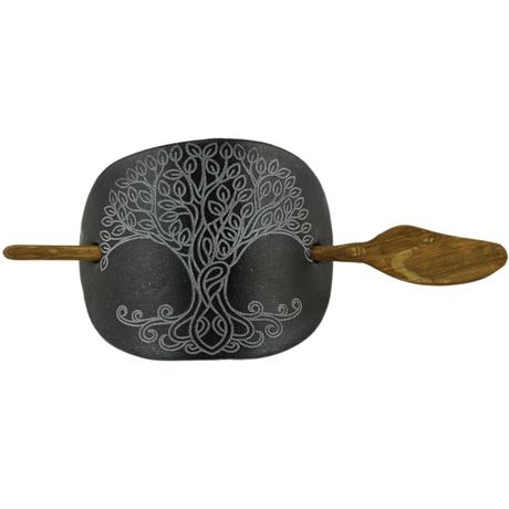 Handcrafted Leather Hair Barrette – Tree of Life, Hand-Painted with Oak Stick