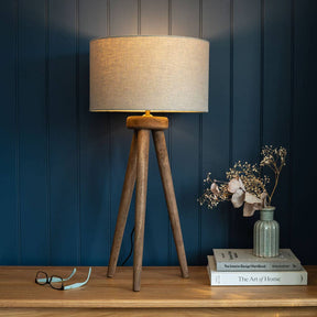 Bring warmth and character to your interior with the Pill Table Lamp, featuring a beautifully hand-carved tripod base made from solid mango wood. Finished in a smooth farmhouse brown stain, the tri-legged design combines rustic charm with understated sophistication.